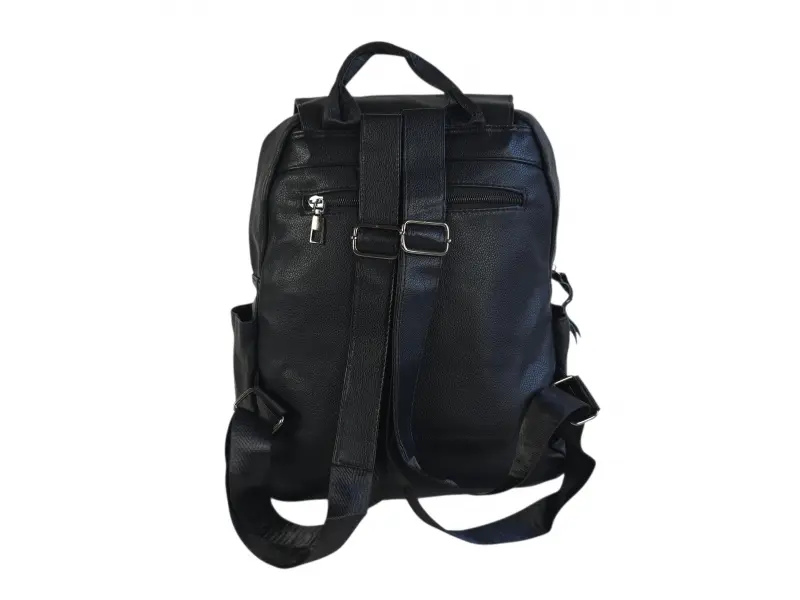 Rucsac de damă din piele artificială de înaltă calitate. Rucsac negru cu un design frumos și actual, cu compartimente practice. Rucsac de damă de zi cu zi, cu bretele reglabile confortabile.