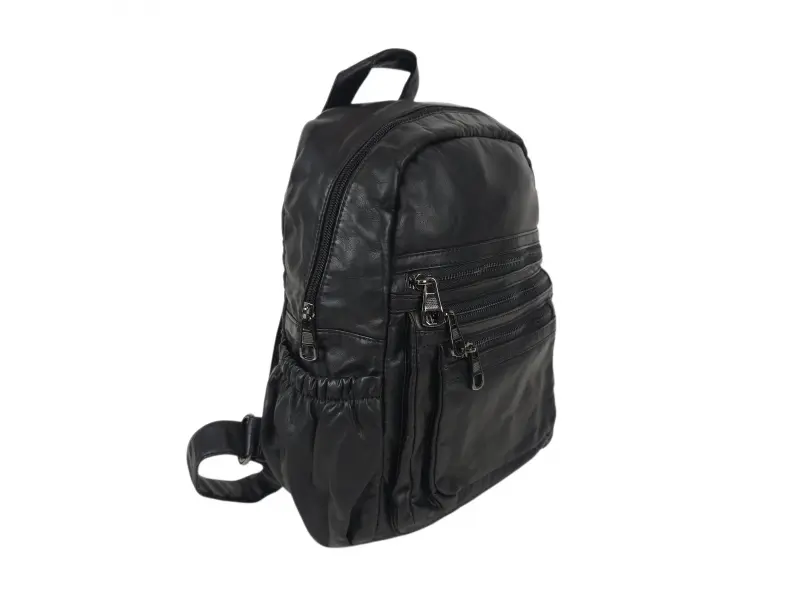 Rucsac la modă pentru femei - Rucsac de damă din piele fiartă. - Un compartiment mare cu fermoar. - Buzunar interior cu fermoar. - Compartiment pentru telefon și documente. - Trei buzunare frontale cu fermoar. - Două buzunare laterale. - Mâner pentru transport în mână. - Bretele reglabile.