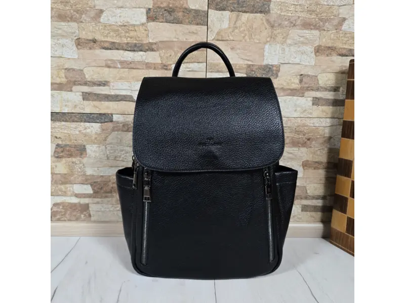 Rucsac la modă pentru femei - Rucsac de damă confecționat din piele ecologică. - Un compartiment mare cu fermoar și capac cu închidere magnetică. - Buzunar interior cu fermoar. - Buzunar interior fără fermoar. - Buzunar frontal mare cu fermoar sub clapă. - Două buzunare frontale cu fermoar. - Două buzunare laterale. - Mâner pentru transport în mână. - Bretele reglabile.