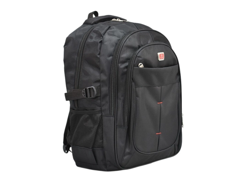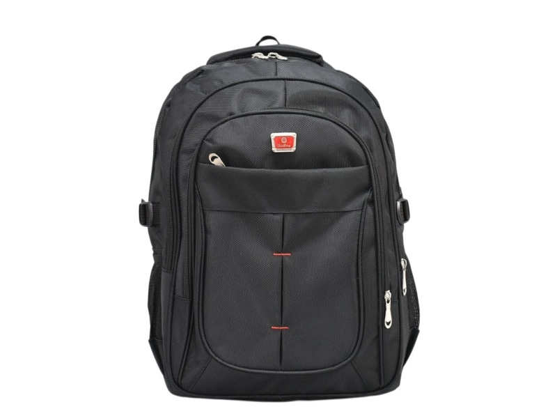Rucsac mare pentru laptop pentru bărbați - Un compartiment principal cu fermoar. - Compartiment pentru laptop potrivit pentru un laptop de 15,6". - Două buzunare frontale cu fermoar. - Două buzunare laterale din plasă. - Mâner pentru transport în mână. - Bretele reglabile.