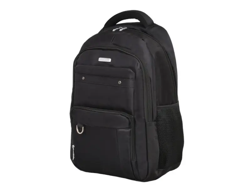 Rucsac robust pentru laptop de 15,6 inci - Un compartiment principal cu fermoar. - Compartiment pentru laptop. - Buzunar interior cu fermoar și compartimente mici. - Trei buzunare frontale cu fermoar. - Plase laterale pentru sticle. - Mânere pentru transport în mână. - Bretele reglabile. - Spate confortabil.