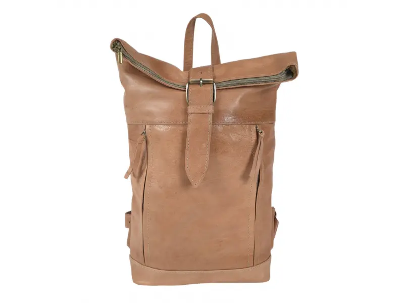Rucsac mare, de culoare naturală, confecționat din piele naturală - Rucsac confecționat din piele naturală de calitate. - Un compartiment principal cu fermoar și curea din piele. - Buzunar interior cu fermoar. - Două buzunare frontale cu fermoar. - Buzunar spate cu fermoar. - Mâner pentru transport în mână. - Bretele reglabile.