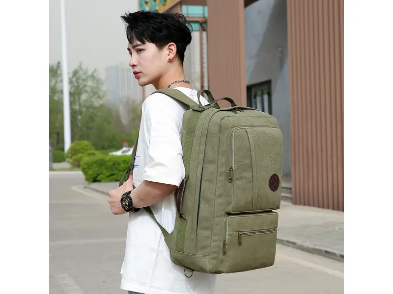 Rucsac robust din pânză - Rucsac din prelată, material impermeabil și extrem de rezistent. - Un compartiment principal cu fermoar. - Buzunar interior fără fermoar. - Patru buzunare frontale cu fermoar. - Buzunare laterale. - Trei mânere pentru transport în mână. - Mâner lung reglabil. - Bretele reglabile.