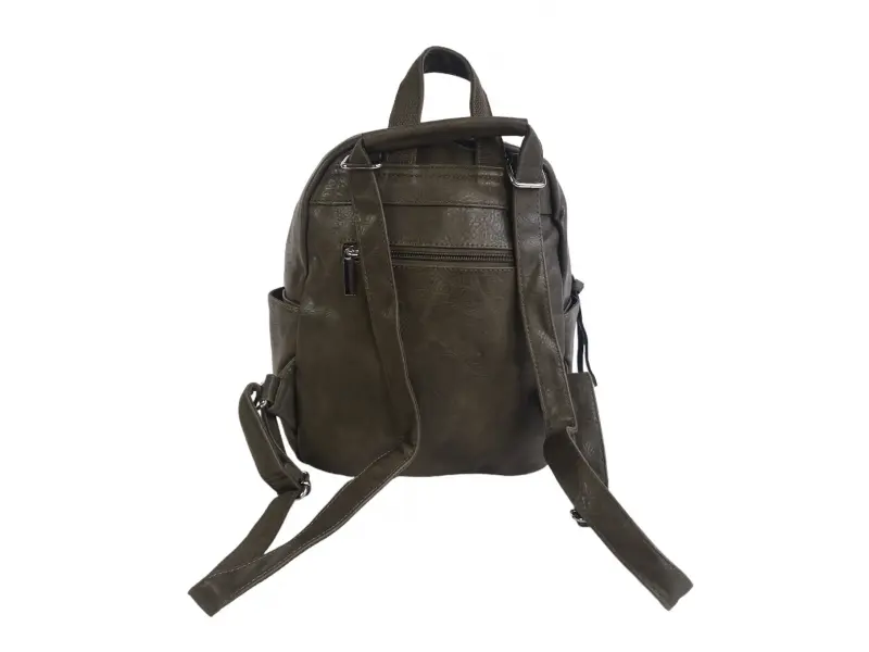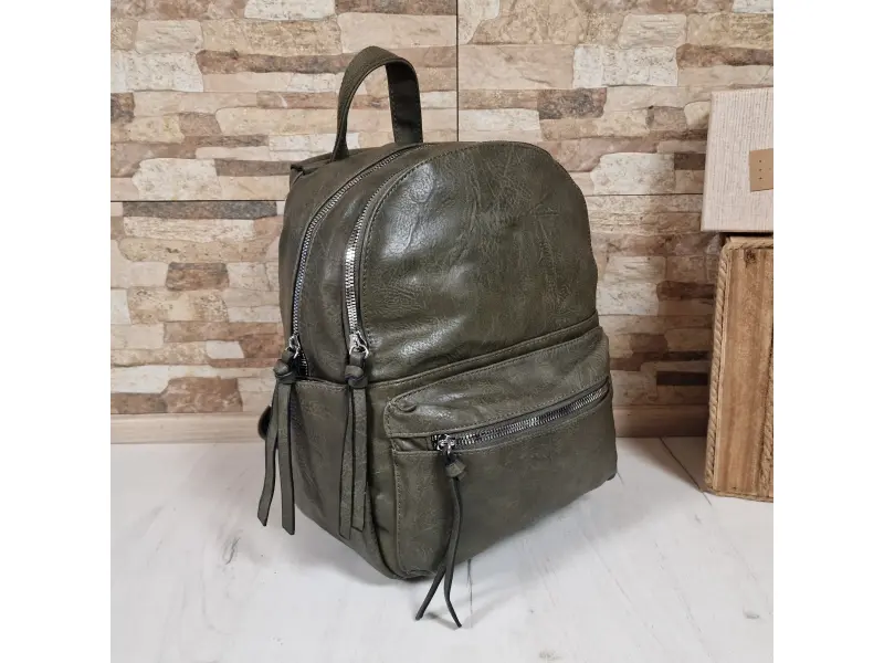 Rucsac - geantă într-o frumoasă culoare verde - Rucsac de damă confecționat din piele ecologică. - Un compartiment mare cu fermoar. - Buzunar interior cu fermoar. - Compartiment pentru telefon și documente. - Două buzunare frontale cu fermoar. - Buzunar spate cu fermoar. - Două buzunare laterale. - Mâner pentru transport în mână. - Poate fi transportat ca o geantă. - Bretele reglabile.
