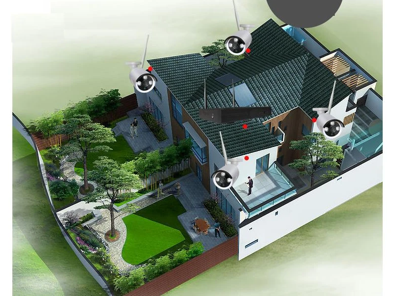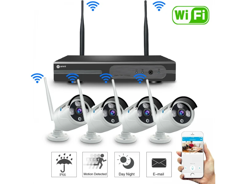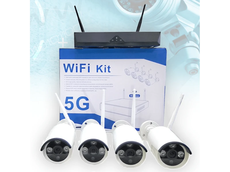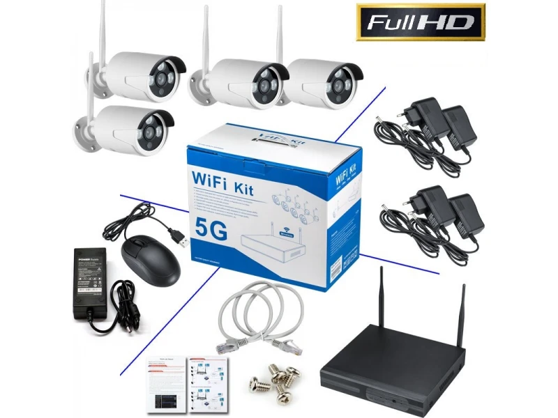 Set de 4 camere CCTV echipate cu tehnologie wireless 5G. Camerele sunt echipate cu tehnologie NVR ONVIF IP, care permite accesarea și vizualizarea în timp real prin intermediul smartphone-ului, tabletei sau computerului în modul streaming. Funcționează cu toate sistemele de operare existente în prezent pe piață - Apple, Android, Windows, Symbian etc. Camerele sunt potrivite pentru instalare în exterior și în interior. Kitul conține: 4 camere; 4 adaptoare de alimentare pentru fiecare cameră; 1 buc. DVR; 1 adaptor de alimentare pentru DVR; 1 buc. mouse USB; Elemente de fixare. Garanție de 24 de luni – ATENȚIE, doar Robicam oferă o garanție de 24 de luni. Hard disk-ul nu este inclus în kit! Caracteristici ale camerei: Rezoluție: 1080p; Rezoluție: 5MP; Compresie video: H.264; Lentilă: 3,6 mm; Comutare automată mod zi/noapte; Conexiune fără fir Wi-Fi; Alimentare: 12V CC; Dimensiuni: 165x62x62 mm. Caracteristică DVR: Ieșire video VGA; Ieșire video HDMI; Funcție de detectare a mișcării; Înregistrare de înaltă calitate; Port de rețea; 2 porturi USB 2.0; Copiere de rezervă: unitate flash USB, unitate HDD detașabilă USB, rețea (nu este inclusă); Monitorizare de la distanță prin telefon mobil: până la 10 utilizatori simultan; Suportă monitorizare prin intermediul telefonului mobil: Symbian, Windows Mobile, Android, iPhone, Blackberry. Alimentare: CC 12V. Dimensiuni: 250x220x40mm.