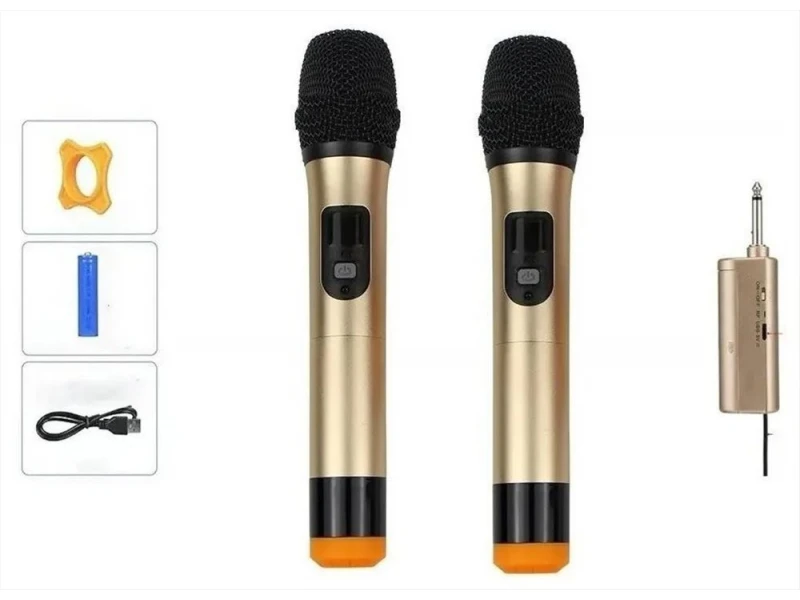 Două microfoane HiFi wireless de înaltă calitate cu receptor WVNGR WG-200II Marcă: WVNGR Model: WG-200II Frecvență de transmisie: 500 - 850MHz Frecvența de stabilizare: 0,002% Sensibilitate: > 96 dB Alimentare receptor: 1 baterie 18650 - reîncărcabilă Alimentare microfon: 2 baterii AA Sursă de alimentare receptor: 1 baterie 18650 - reîncărcabilă Sursă de alimentare receptor: 1 baterie 18650 - reîncărcabilă Sursă de alimentare receptor: 1 baterie 18650 - reîncărcabilă Rază de acțiune: până la 60 de metri Afișaj: arată frecvența fiecărui microfon Conținutul kitului: Microfoane wireless cu afișaj: 2 buc. Receptor cu antenă: 1 buc. Baterie de alimentare: 1 buc. 18650 Baterii AA pentru microfoane: 2 buc. Cablu de încărcare pentru receptor: 1 buc.
