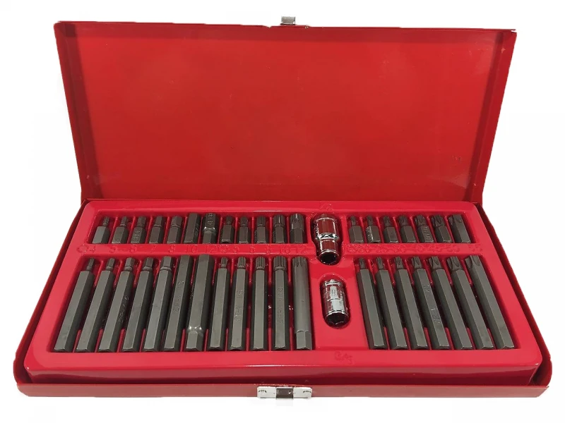 Torx Cat cu dimensiuni: - Μήκος 30 χλστ: T20; T25; T30; T40; T45; T50; T55 - Μήκος 75 χλστ: T20; T25; T30; T40; T45; T50; T55 Pisicile XZN – 12 acte cu dimensiuni: - Μήκος 30 χλστ: M5; M6; M8; M10; M12 - Μήκος 75 χλστ: M5; M6; M8; M10; M12 Dimensiuni: - Μήκος 30 χλστ: 4,0 χλστ; 5,0 χλστ; 6,0 χλστ; 7,0 χλστ; 8,0 χλστ; 10,0 χλστ; 12,0 χλστ - Μήκος 75 χλστ: 4,0 χλστ; 5,0 χλστ; 6,0 χλστ; 7,0 χλστ; 8,0 χλστ; 10,0 χλστ; 12,0 χλστ