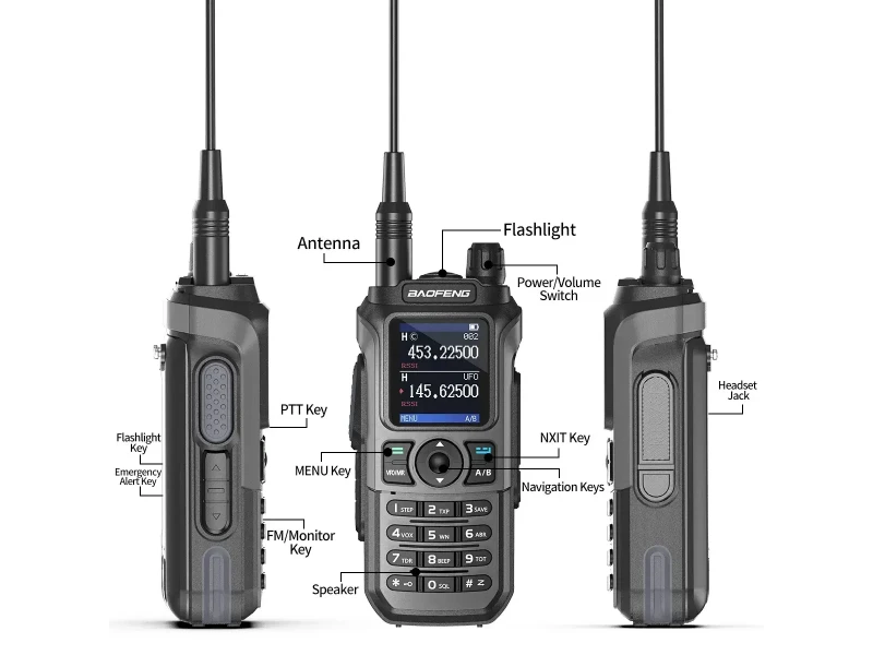 • Dual Band: Capacitatea de a opera simultan pe două frecvențe diferite (VHF/UHF), ceea ce crește eficiența comunicării