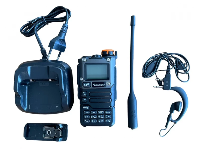 Două intervale principale de frecvență (136-173.9975MHz) și (400-469.9975MHz) asigură o comunicare fiabilă în păduri dese sau în interior. Se pot asculta frecvențe radio și aviație AM/FM. Posibilitatea de a selecta 200 de canale și codare DTMF, ceea ce vă permite să trimiteți un mesaj către un anumit receptor fără ca restul grupului să-l audă. Aveți opțiunea de a alege puterea de ieșire în funcție de perimetrul pe care doriți să îl acoperiți. Puteți alege o putere mai mică, ceea ce va economisi energie. Stația radio QUANSHENG UV-K5 este echipată cu o baterie reîncărcabilă de 1600 mAh. În funcție de distanța de operare necesară, puterea stației poate fi redusă, ceea ce reduce și consumul de energie. Fabricată din metal și plastic rezistent și durabil, cu o antenă elastică cauciucată, stația radio permite funcționarea în condiții meteorologice dificile în aer liber, fără a fi nevoie de protecție împotriva spargerii antenei. Caracteristici: Frecvențe: VHF (136-173.9975MHz), UHF (400-469.9975MHz), AM, FM Putere: 5W (Putere de ieșire reglabilă: Mică ~ 1w; Medie - 3w; Înaltă - 5w) Rază de acțiune: peste 5 km Stocare canale: 200 Mod de funcționare: simplex/half-duplex Stabilitate de frecvență: +-1ppm Treaptă de frecvență: 2.5/5/6.25/10/12.5/25 kHz Sensibilitate de referință: FM (12dB SINAD) F1 (50-76MHz): -121dBm F2(108-135.9975MHz):-121dBm F3 (136-173,997 MHz): -123 dBm F4(174-349.9975MHz):-123dBm F5 (350-399,9975MHz): -123dBm F6 (400-469,9975 MHz): -123 dBm F7 (470-599,9975 MHz): -121 dBm Putere audio: ≥0,5 W Distorsiune audio: ≤10% Cod de codificare cu 10 grupuri Scanare în frecvență/DCS/CTCSS Semnal digital CTCC/DCS Antenă cu bandă dublă Impedanța antenei: 50 ohmi Intermodulație: 40dB Funcție VOX încorporată Lanternă LED Alarmă SOS Blocarea tastaturii Cronometru (TOT) Alimentare: baterie litiu-ion de 1600 mAh Conector de încărcare TYPE-C Dimensiuni: 115 mm x 60 mm x 37,5 mm Greutate: 243 grame Setul include: 1 x stație radio QUANSHENG UV-K5 (8) 1 x baterie reîncărcabilă Li-ion de 7,4 V și 1600 mAh 1 antenă 136-174/400-470Mhz 1 x Clemă de curea 1 încărcător de 220V 1 x Instrucțiuni de utilizare
