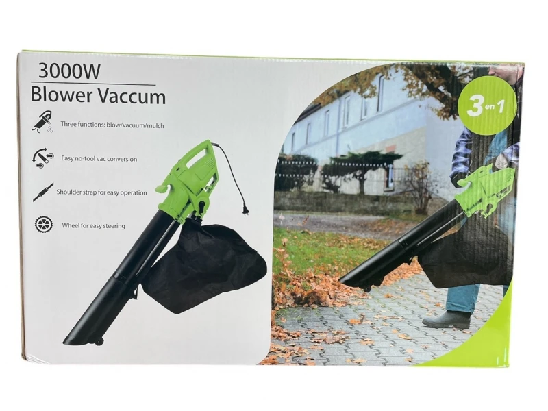 🚀 Principalele avantaje ale unei suflante/colector de frunze de 3000 W 🌬️ Suflare și colectare puternică Motorul de 3000 W oferă un flux puternic de aer pentru curățarea frunzelor, prafului și a resturilor mici 😊 Se transformă ușor într-un aspirator pentru colectarea rapidă a gunoiului 🔄 Trei funcții într-un singur dispozitiv Suflare - îndepărtează frunzele și resturile de pe alei și peluze Aspirator - absoarbe gunoiul și frunzele într-o pungă atașată Mulcire - mărunțiește deșeurile în material fin de mulcire pentru compost sau eliminare ușoară ⚙️ Comoditate și ușurință în utilizare Conversie fără instrumente între moduri în mai puțin de 10 secunde Curea de umăr pentru o distribuție uniformă a greutății și mai puțină oboseală Roată pentru mișcare lină și ghidare pe teren neuniform