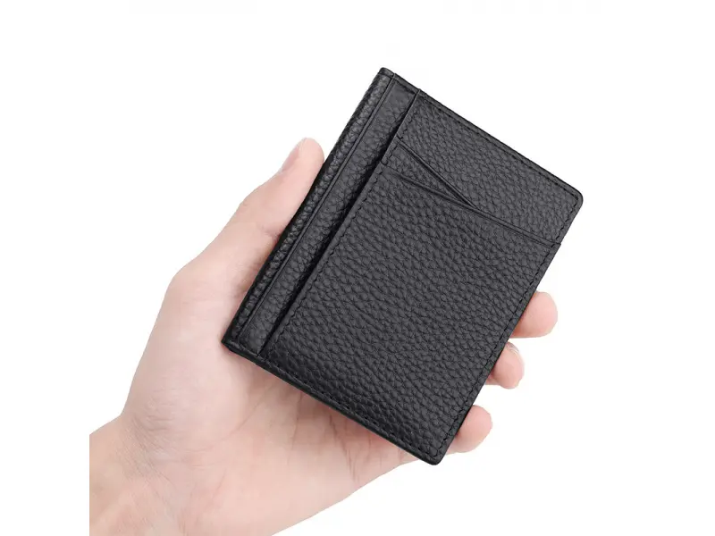 Suport pentru carduri din piele naturală - Fabricat din piele naturală. - Sloturi pentru carduri. - Spațiu pentru bancnote și monede.