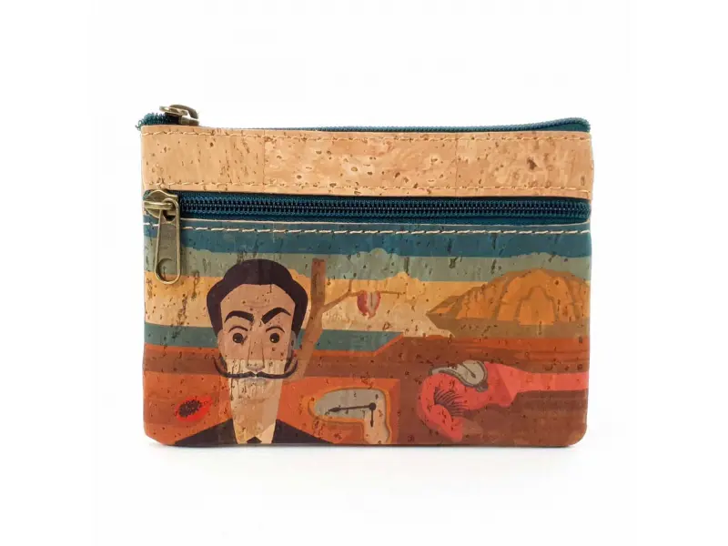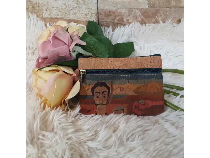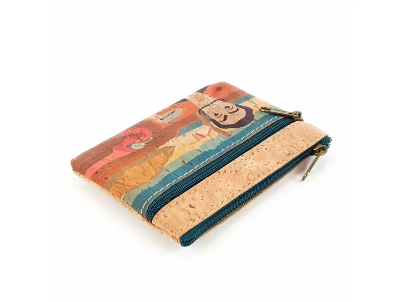 Portofel din plută - Gustavo. Portofel din plută interesant pentru femei. Portofel de designer confecționat din material ecologic, cu două compartimente cu fermoar și un loc pentru carduri.