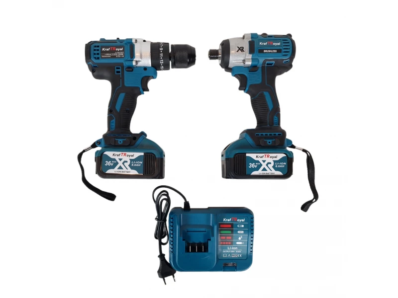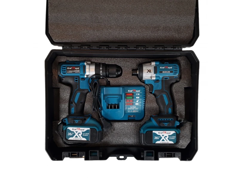 • Șurubelniță de impact și șurubelniță fără fir, fără perii, 36V 8AH, într-o cutie KRAFTROYAL