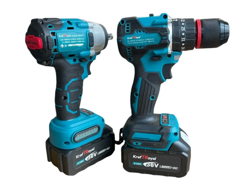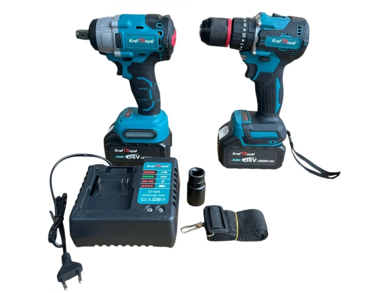Șurubelniță și șurubelniță de impact fără fir, fără perii, 36V 8AH, într-o cutie KRAFTROYAL