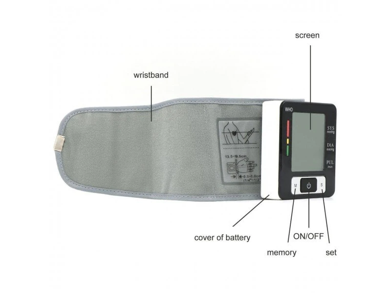 Tensiometru BABYLY BLMP-29 Aparatul automat BABYLY BLMP-29 este conceput pentru măsurarea rapidă a tensiunii arteriale și a pulsului. Acesta este un model nou pe piață. Principala sa caracteristică distinctivă față de analogi este afișajul LCD mare (47×39 mm) cu cifre mari (11×6 mm) și contrast excelent. Persoanele cu vedere slabă vor vedea citirile dispozitivului. Acesta pompează în sine aerul și oferă datele în format digital. Ușor și convenabil de utilizat, mai ales dacă locuiți singur sau dacă cei dragi nu sunt mereu acasă și trebuie să vă măsurați tensiunea arterială. Aparatul automat UKC BABYLY BLMP-29 include un sistem automatizat format dintr-o pompă electrică și o supapă de eliberare a aerului. Când măsurarea este finalizată, dispozitivul se oprește. Caracteristici: Tip: tensiometru – încheietura mâinii Afișaj: LCD 47×39 mm Metodă de măsurare: metodă oscilometrică Umflare automată: (pompă electrică) Eliberare automată a aerului: (supapă de suprapresiune) Detector de presiune: senzor de rezistență la presiune Interval de măsurare a presiunii: 0 mm Hg - 299 mmHg Interval de măsurare a pulsului: 40-200 bătăi/min Coeficient de precizie a presiunii: ± 3 mm Hg. Citire puls: ± 5% Putere: 3V Oprire automată după 60 de secunde Alimentare: 2 baterii AAA stochează ultimele 90 de măsurători Setul include: dispozitiv BABYLY BLMP-29 – 1 buc. cutie de depozitare din plastic – 1 buc. Manual în limba engleză – 1 buc. cutie de carton – 1 buc.