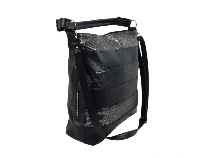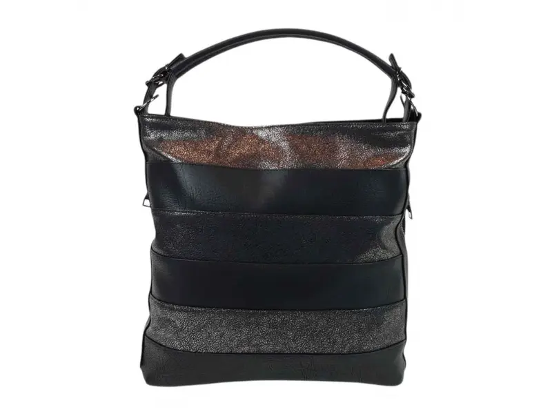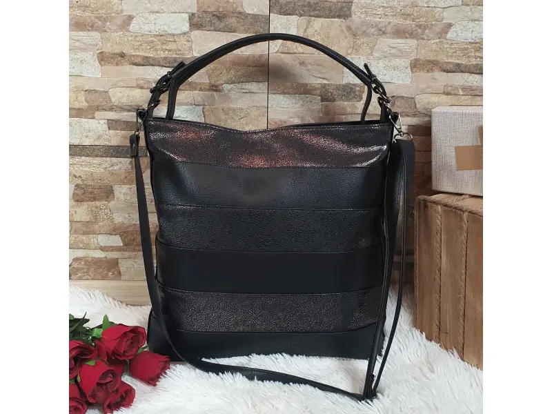 Geantă de damă bulgărească, confecționată din piele ecologică de calitate. O geantă tip geantă cu un compartiment mare cu fermoar, împărțit în două printr-un compartiment cu fermoar, un buzunar interior mic cu fermoar, un compartiment pentru telefon și documente, un buzunar spate cu fermoar și două buzunare laterale cu fermoar. O geantă mare cu un mâner confortabil de transport și un mâner suplimentar lung reglabil.