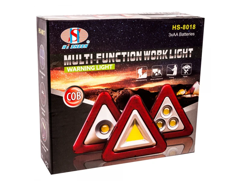 Triunghi LED 3 în 1, lanternă de avarie și de lucru pentru mașină. Un articol foarte util care ar trebui să fie prezent în fiecare mașină. Lampa poate fi folosită ca iluminat de avarie; pentru camping sau în natură. Bateria reîncărcabilă încorporată se încarcă cu un cablu USB inclus în kit sau prin intermediul panoului solar încorporat.
