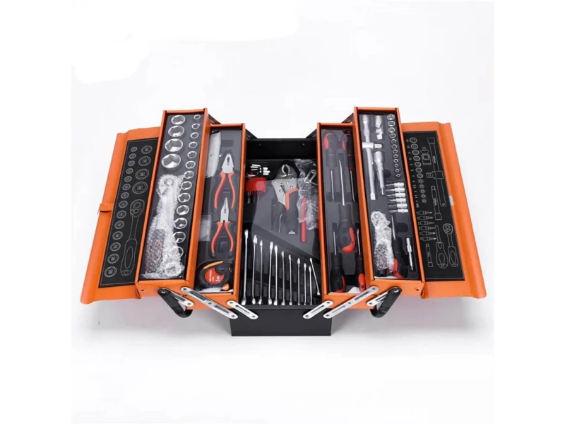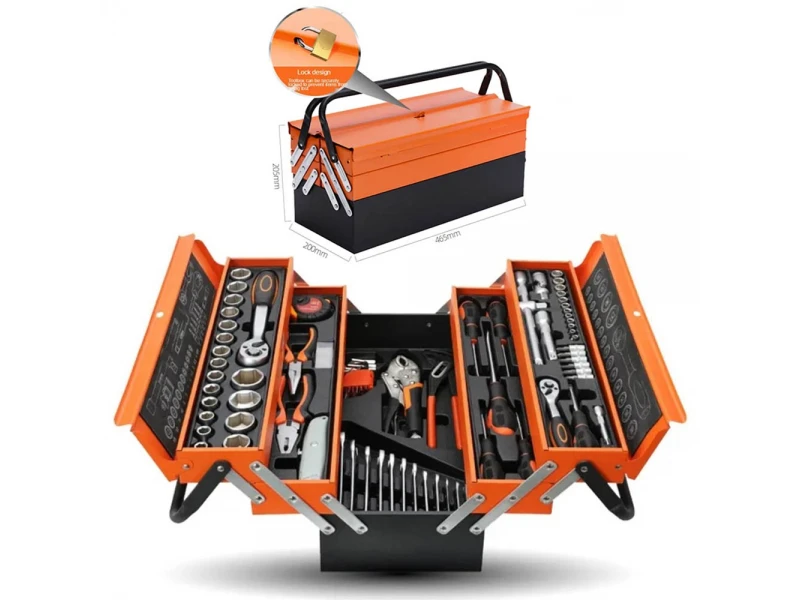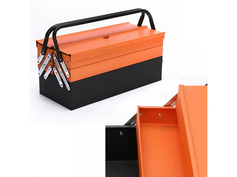 O cutie metalică robustă care se deschide, astfel încât să aveți mereu la îndemână uneltele și consumabilele.