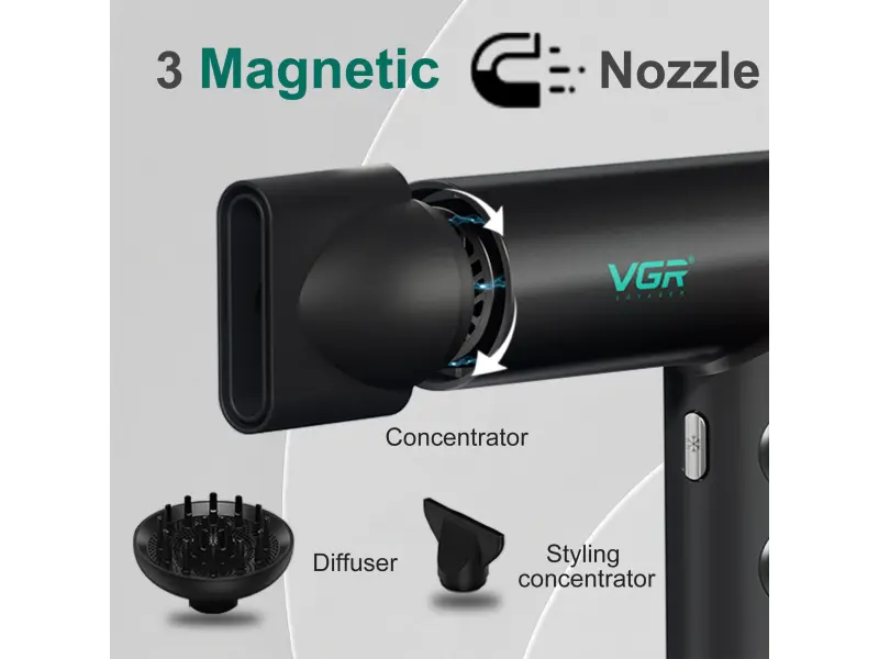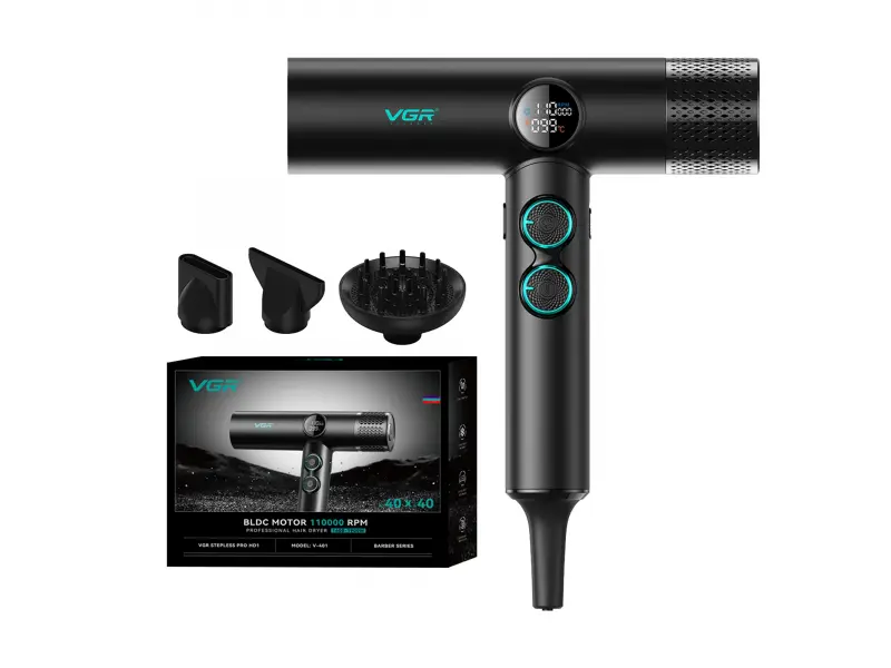 Uscător de păr profesional VGR-401 cu ioni, motor BLDC și afișaj LED