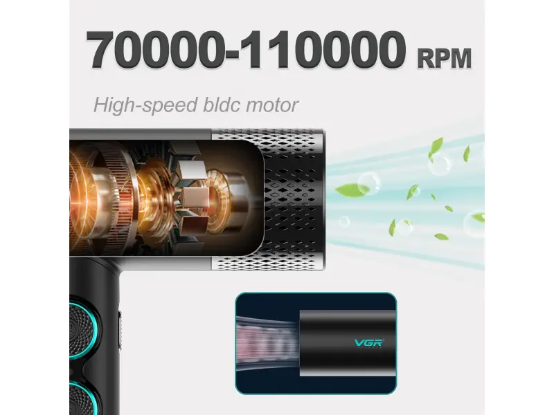 Uscătorul de păr cu ioni negativi VGR 401 este conceput pentru cei care nu fac compromisuri în ceea ce privește calitatea îngrijirii părului. Cu un motor puternic BLDC fără perii de 1900 W , acest uscător de păr oferă un flux de aer puternic și stabil pentru o uscare ultra-rapidă , protejând în același timp structura părului.